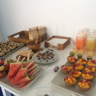 Desde pipocas, cestinhos de fruta e iogurte, gomas, bolinhos de aveia com mirtilos, nutella, espetadas de fruta!! Tudo uma maravilha..